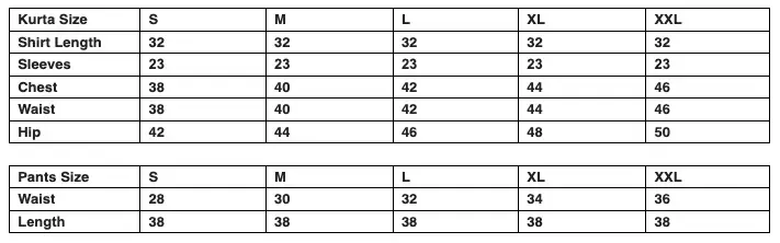 Size Chart in Inches: ( These are garment measurements and NOT body measurements)